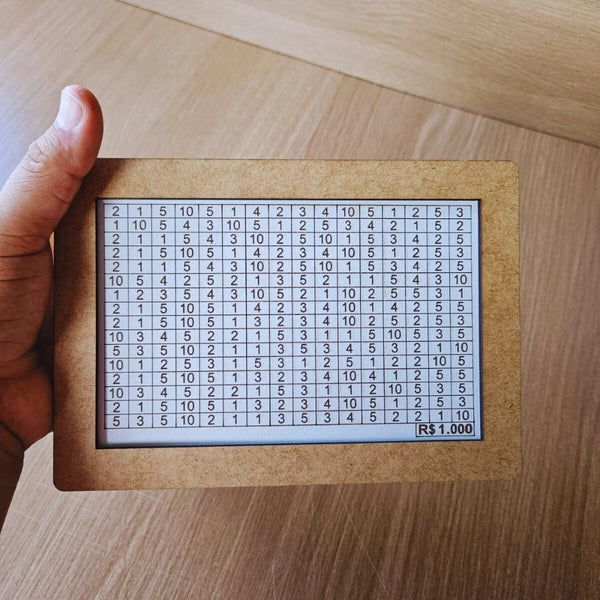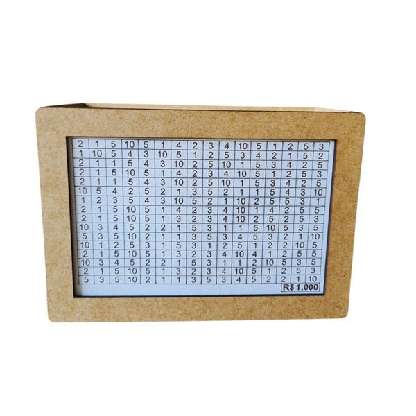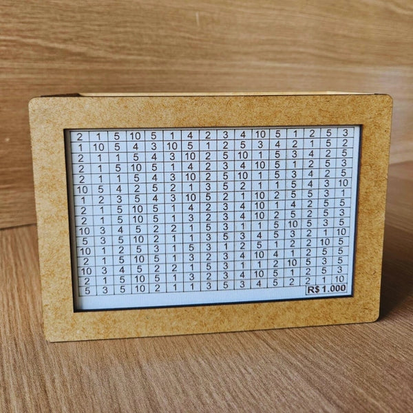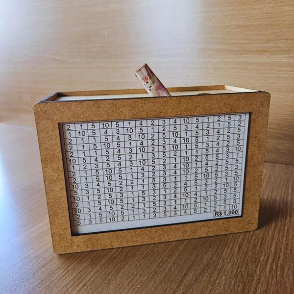 Com tamanho compacto e acabamento natural, o cofre traz um visual limpo e elegante, perfeito para deixar à vista como lembrete diário do seu objetivo.