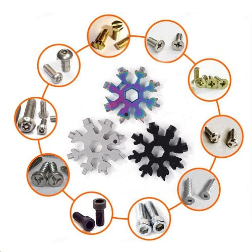18 em 1! Esta ferramenta múltipla também inclui chaves Allen que vêm com os tamanhos 3, 4, 5, 6, 7 e 8, abridor de garrafas e chaves inglesas com tamanhos 6, 7, 8, 9, 10, 11, 12 e 14.