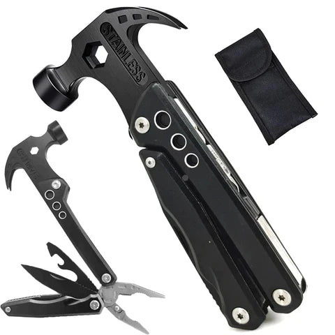 Além de ser um martelo resistente e durável, este produto também possui diversas ferramentas úteis em seu design, como alicate, chave de fenda, chave Phillips, faca, serra, lanterna e muito mais.