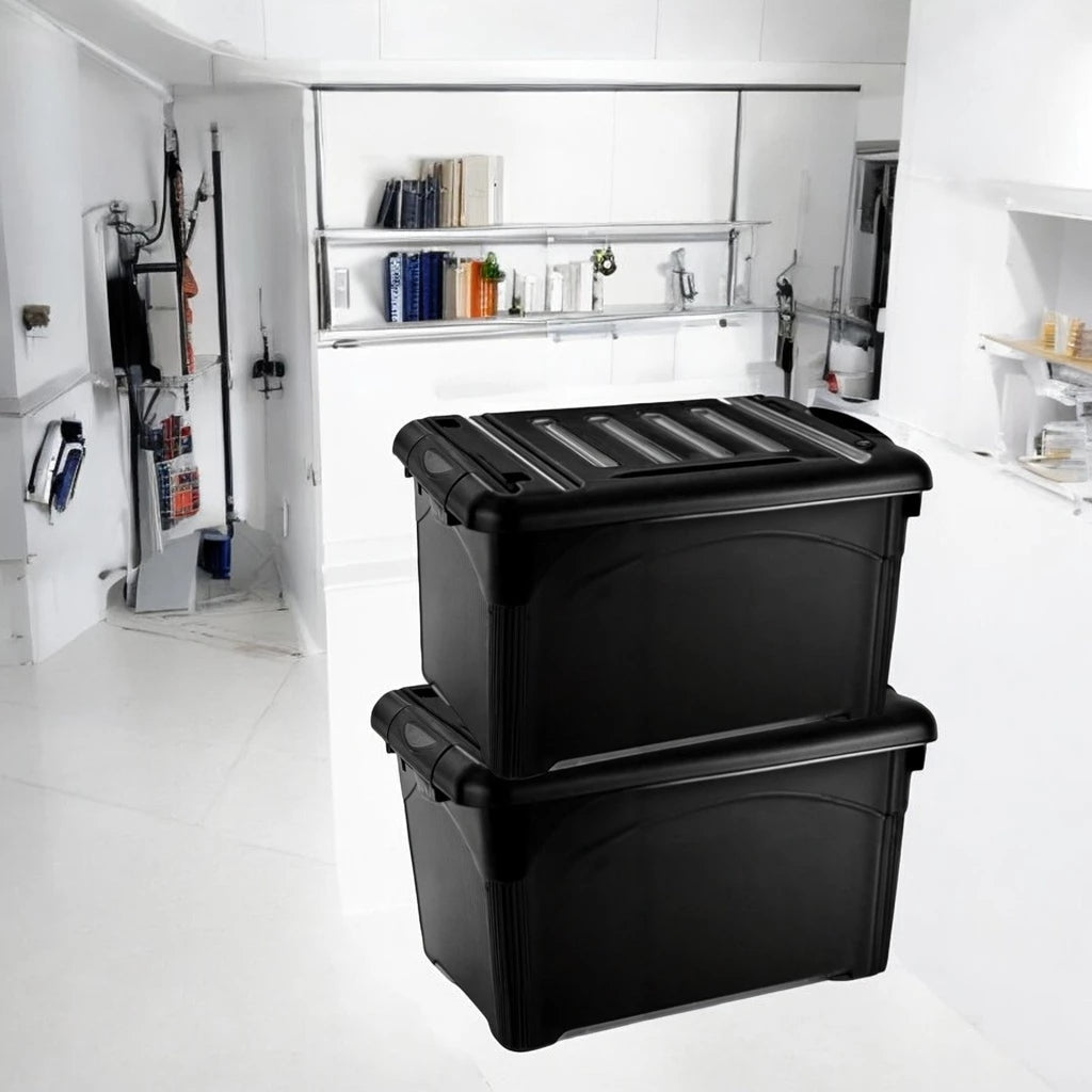Com quase 100 litros de capacidade, esta caixa acomoda volumes generosos, otimizando o espaço em ambientes como casas, escritórios, depósitos e até mesmo em veículos para transporte de cargas leves.